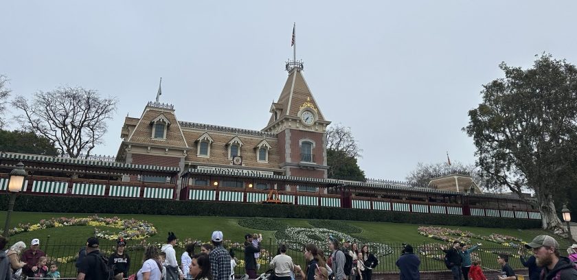 入り口のディズニーランドレイルロードです。1955年オープンの当初からあるアトラクションの一つで、ディズニーランドパークを一周する蒸気機関車のアトラクションです。その下にはミッキーの花壇。これがすべてのディズニーランドの原点だと思うとなんだか感慨深いです。