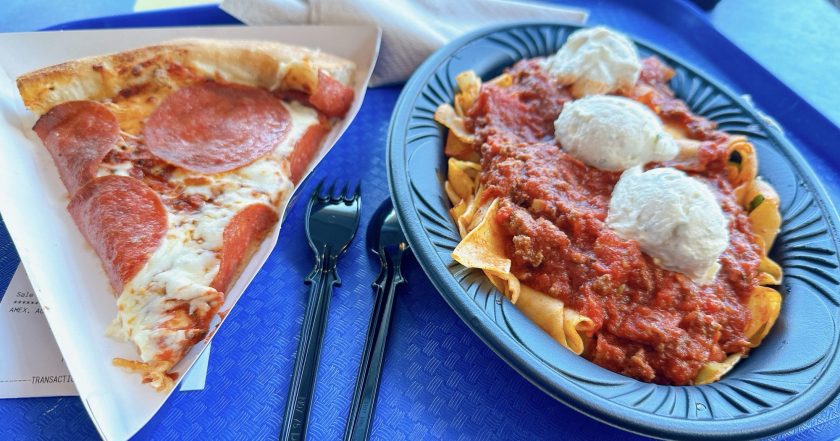 ペパロニのピザと、トマトソースのパスタを食べました。どちらも意外と大きくて大満足。