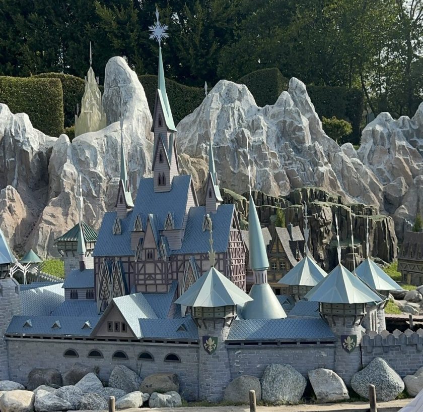 ちょっと高いところにあって見えにくいのですがこちらは美女と野獣の野獣のお城です。下のほうには小さな町も広がっています。