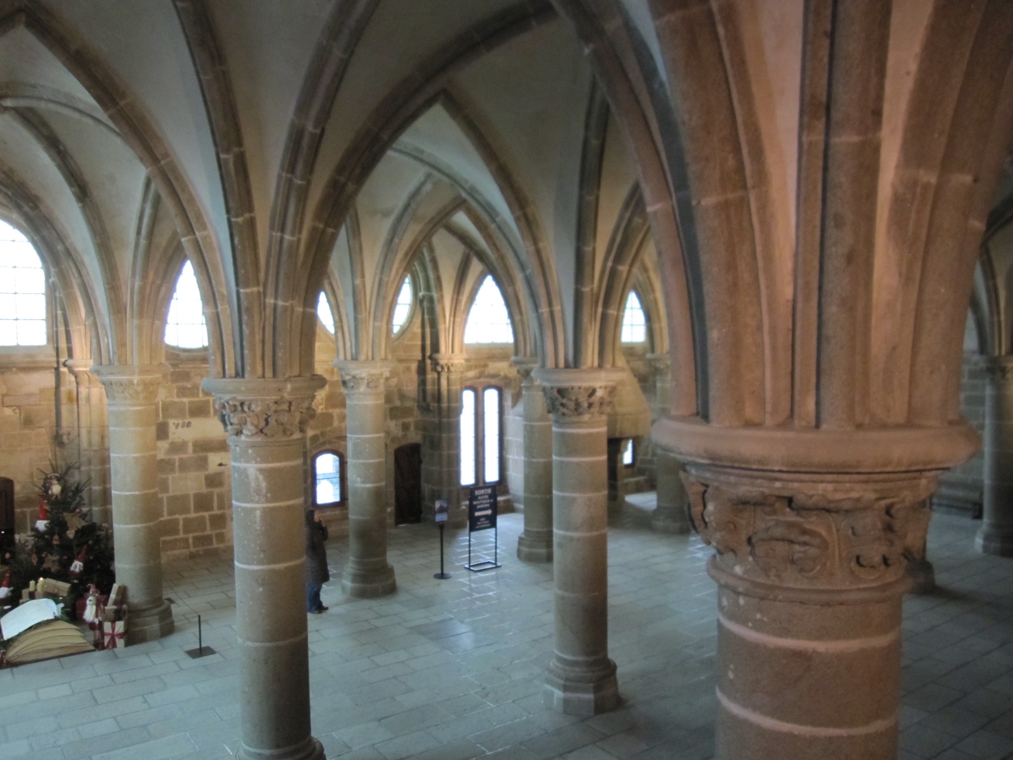 修道士たちが学問や写本作業を行った知的活動の場。高い天井と太い柱が印象的です。名前は「騎士」とついていますが、実際は修道士の学びの場で、当時の文化的中心地だったんだとか。