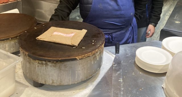 あの有名なオムレツには行きませんでしたが、ここでガレットを頂きました。お母さんと娘さん?のような人が歌いながらガレットを焼いてくれました(笑)