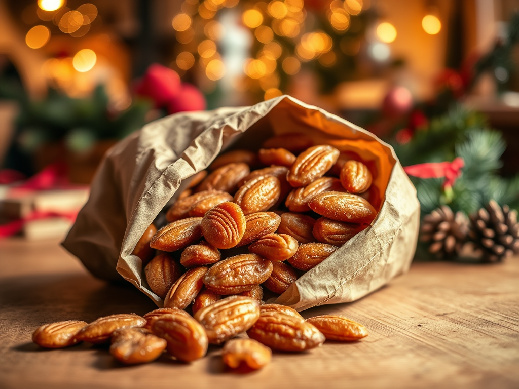 - キャラメリゼした温かいアーモンドのお菓子。
