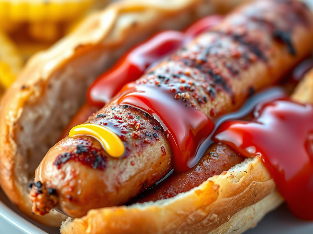 - パリッと焼いたソーセージをパンに挟み、マスタードやケチャップをかけて食べます。