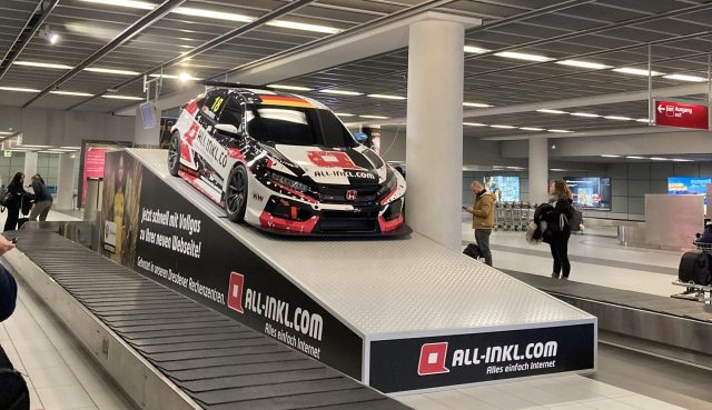 荷物レーンにはスポーツカー?なんだか珍しいので撮ってみました。