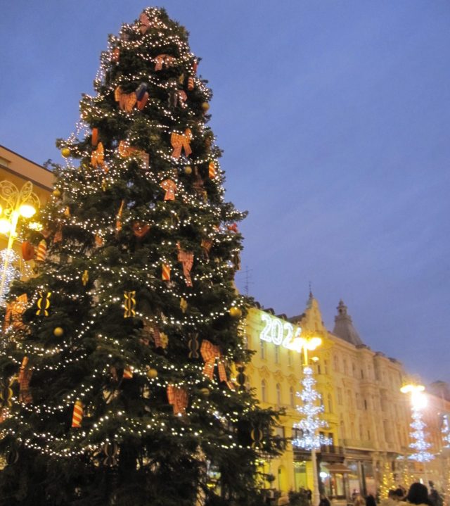 大きなツリーにはよく見るとザグレブのケーブルカーも飾られていました。