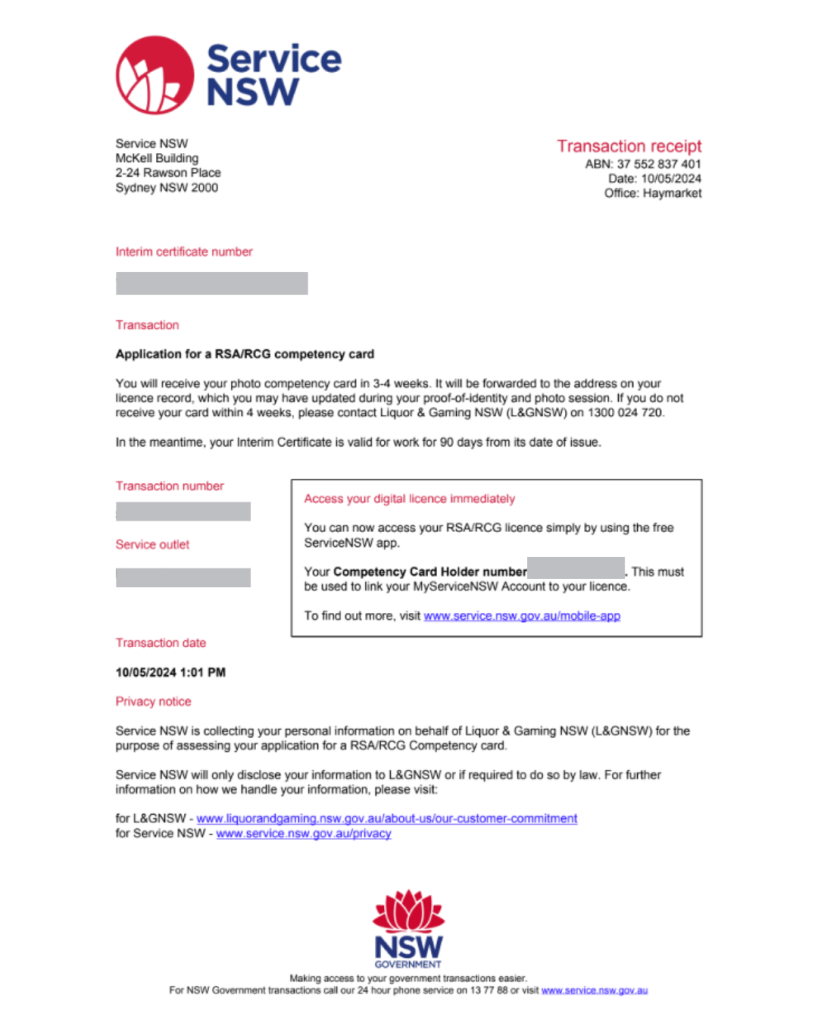 合格後はナンバーが送られてくるので、それをService NSWのアプリで登録します。