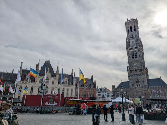 鐘楼は13世紀に建設が開始され、のちに増築と改修が行われているそうです。中世には市庁舎や防火監視塔として使用され、当時は都市の象徴として商業の権力・自治権を示しつつ火災や外敵から街を守る監視塔でもあったそうです。高さは約83mで登ることが可能です。