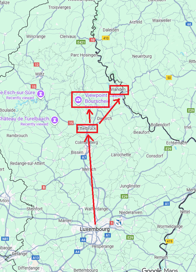 プランとしては①ルクセンブルクの中央駅②Ettelbruck 駅③Bourscheid城 view point ④Ettelbruck駅⑤Vianden城 これが一番効率が良さそうでした。