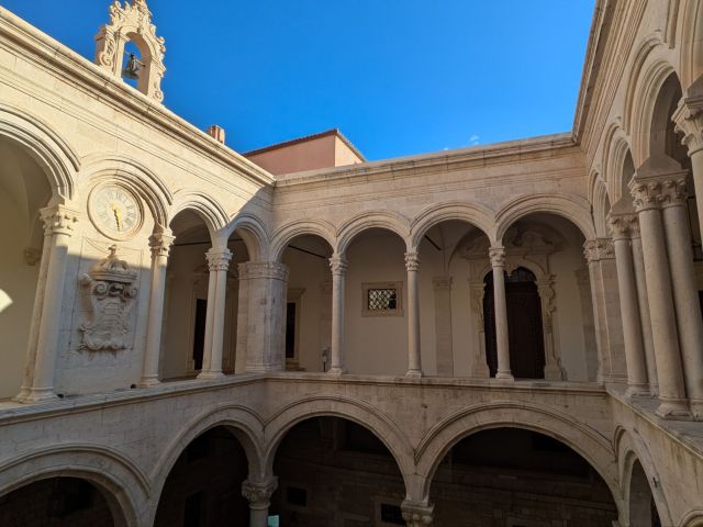 上階には、かつて元老院や裁判所の部屋がありました。ラグーサ共和国では、政治の場に「光と開放」を象徴的に取り入れることが重要視されました。そのため、ここは自由と透明性の象徴でもあったそうです。訪れたときはまだこの建物についての知識も浅く、ただただ美しい建築様式と空とのコントラストに見惚れていただけでしたが、ということは雨が降るとずぶ濡れの中政治を行うのか、、?なんて浅はかな私が出てきます。(写真は丁度人があまりいないときに撮れました◎)