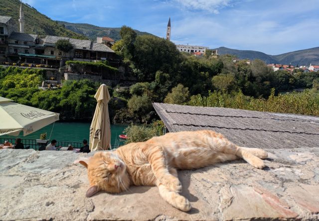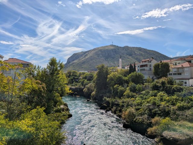 モスタルは山に囲まれた盆地にあるため、どこから見ても自然がたくさんあります。綺麗な川と様々な文化が混ざったユニークで素敵な街でした。