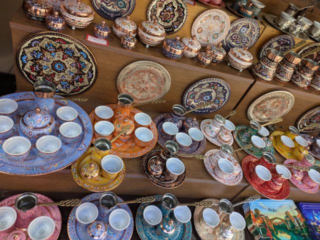 街中を散策しているとたくさんのお土産、雑貨がたくさんあり、どれもトルコっぽい印象です。というのもボスニアヘルツェゴビナは1463~1878年の約400年間、オスマン帝国の支配下だったためオスマン帝国文化が根付いているからだそうです。