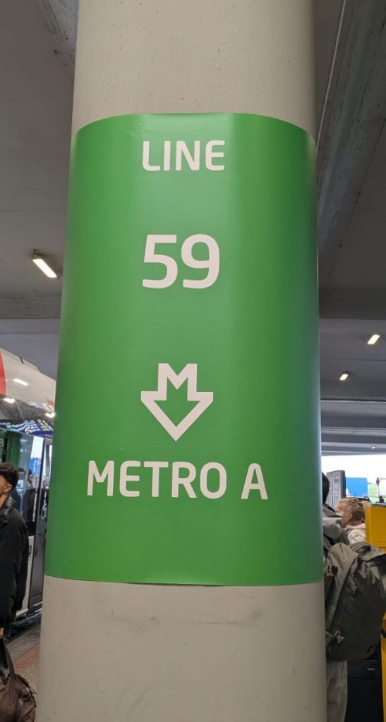 59番バス→メトロAなのでとっても親切なバス乗り場。ちなみに人は全然いませんでしたが、59番のバスに乗り込みます!