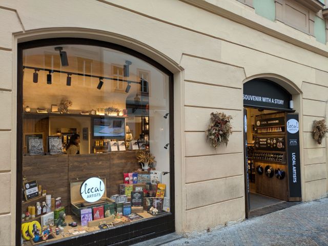 街中を歩いていると目にするお土産屋さんです。こちらはチェコ国内のアーティストやクラフト作家による作品を集めたセレクトショップで全てチェコ製です。クオリティも高く質にこだわったギフトを選ぶならここで間違いないという感じでした。