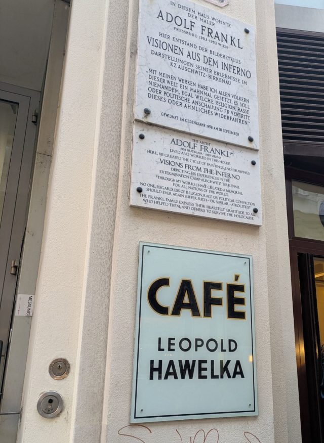 オーストリアで有名な芸術家や作家が良く集まっていたカフェだそうです。中でコーヒーでもいただきたかったのですが、若干並ぶほどの列ができており、外観の写真のみにしました。
