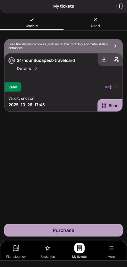 二日目は一日乗車券を購入しました。こちらはプラハの時と同じような使い方で、初乗り物の少し前にアクティベートさせ、そこから24時間有効になります(空港行き以外)。これもQRコードを読み取る動作が起動できますが、一日券なので特に読み取らなくて大丈夫だと思います。