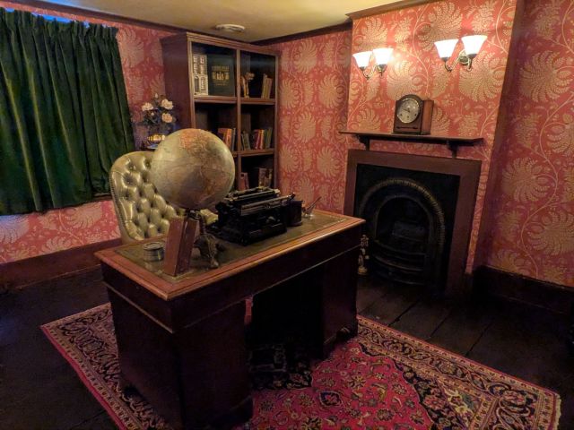 何の部屋か忘れてしまいましたが部屋の中央に机と椅子、どの部屋よりもシンプルです。書斎の様な場所だと思います。ここに載せた写真以外にも部屋があり、シャーロックホームズに関する映画やドラマの展示がありました。日本のドラマやアニメに関するものもあって面白かったです。ほかの方のブログを見てみると蝋人形の展示があったようなのですが、どこにも見当たらず。階段の踊り場に小さな男の子の人形だけ見つけました。(ちょっと怖かったです)