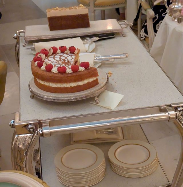 そしてスコーンをいただいている間にケーキトロリーが、、こんなのもらうしかないでしょう。