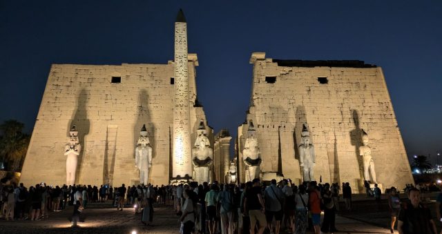 夜の6時頃に行ったのですが大大大混雑していて、チケットの購入の後の小さなセキュリティチェックでは誰も順番に並ぶなんてことはせず、割り込んだもん勝ちという感じのかなりカオスな感じでした。観光バスもあり、クローズの前にみんながなだれ込んだんだろうと思います。ということで大混雑カオスな夜の美しいルクソール神殿へ行ってまいりました。入場料:EGP500。