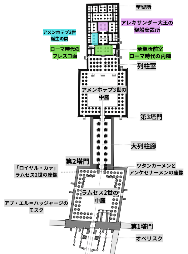 建設にかかわった王:アメンホテプ3世、ツタンカーメン、ホルエムへブ、ラムセス2世