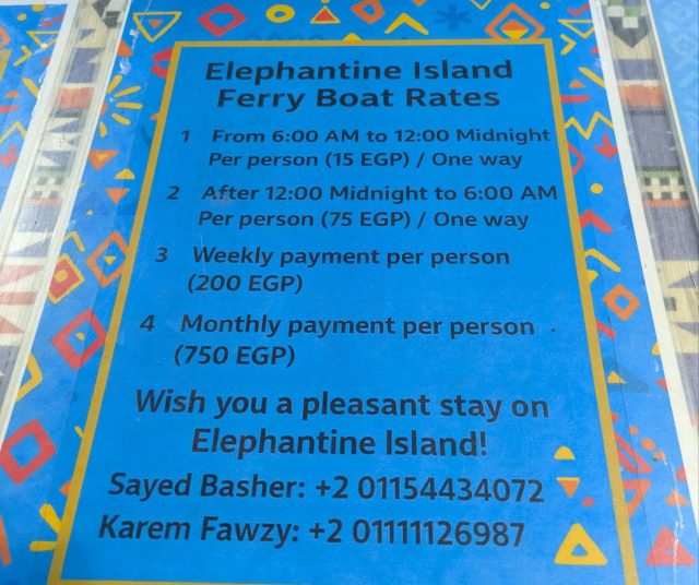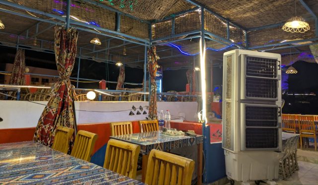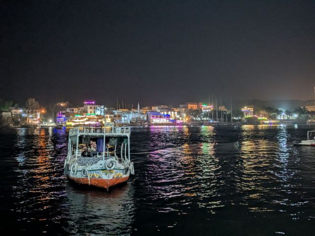 アブ・シンベル神殿のツアーからアスワンへは夕方過ぎ頃に戻りました。とにかく神殿は暑くて、そして移動のバスも4時間強の往復だったのでクタクタです。ホテルで休みつつ、夜ご飯の場所を調べます。宿泊先からナイル川が見え、川にはエレファンティネ島という場所があり、そこにレストランがいくつかあるようだったので行ってみることにしました。