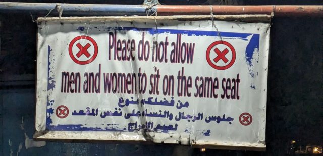 待機場所には「男女、同じ座席に座ってはいけません」と注意書きがありました。エジプト国民の8割程はイスラム教のため、公共な場所での親族以外の男女の接触を避ける必要があります。なかなかに面白い文化というか、おお、、(’ω’)郷に入っては郷に従いましょう。という感じです。日本にいらっしゃるイスラム教の方も日本の郷に従ってほしいものです(日本の現代社会における個人の感想です)。