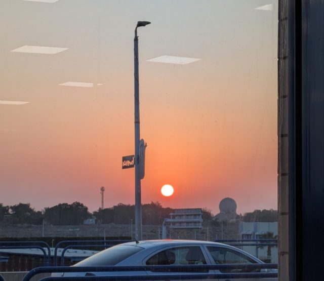 8時発なので6時には到着です。エジプト航空(£90/人)です。アスワン空港はとっても小さい空港でした。またしてもホテルの朝ごはんボックスをいただいて、空港で朝ごはんです。早朝便だったので空港からは朝日が見えました。フライトを待っている間に大エジプト博物館のチケットをオンラインで購入します。