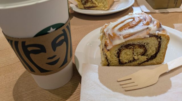 軽食の後はバレエの会場近くのスタバでコーヒータイム、時間潰しと永遠とお喋りです。大きくて激甘シナモンロールをちびちびコーヒーといただきました。あっという間に開演時間が迫ってきたので向かいます。