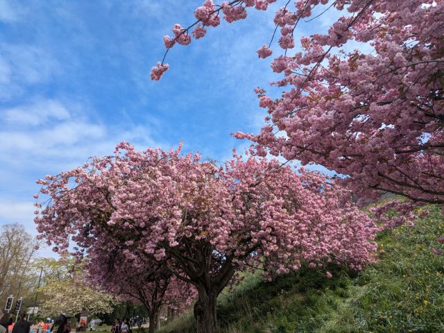 出口を出るとすぐ鮮やかなピンク色の桜の様な木がたくさん植わっていました。調べてみるとやはり桜の木でした。