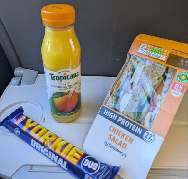 無事乗車できたので軽食タイムです。スーパーで購入したジュース、サンドイッチ、チョコレート。Meal Dealといって①メイン、②スナック、③ドリンクの3つを選んで買うと割引が適応されて個々で購入するよりかなりお得になるシステムです。遠出のお供にピッタリということでした。ヨークまでの約2時間程外を眺めたり、本を読んだり、ぼーっとしていました。