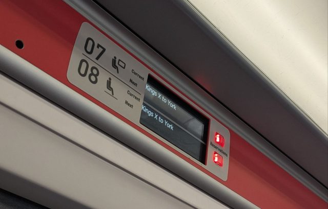 座席は全て指定席で、このようにこの席はキングスクロスからヨークまで予約席です。というような表示がされます。