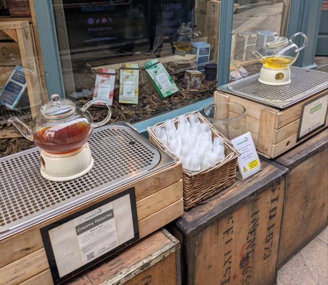 通りにはなんとお茶の試飲があり、さすがイギリスだなという感じです。大丈夫だとは思いますが、衛生面が気になる方は試飲は控えたほうが良さそうかなという印象です(笑)